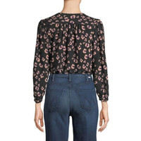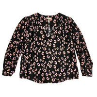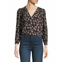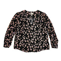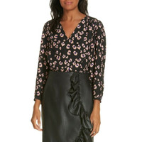 Rebecca Taylor Silk Top Black Cheetah Print V Neck Long Sleeve SZ 6 NWT $295