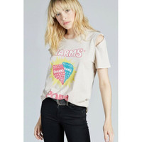 RECYCLED KARMA Vintage Style Graphic Tee w Cutouts Charms Pops graphic tee 100% cotton High low hem Top sticthcing at sides Cut outs on front and back of sleeve/shoulders Length 25.5" - 26.55" Shoulder 15" Chest 17.5" Sleeve 8" SZ S *New with tags
