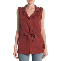 Sanctuary Lyocell Vest Open Front Tie Waist Rust Red Cargo Vest Sz S NWT $128