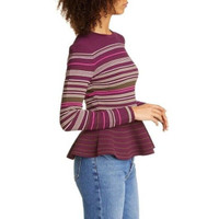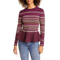 Ted Baker London Leytina Striped Peplum Burgundy Sweater SZ 4 TED 10 US NWT
