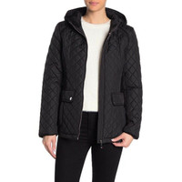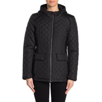 Tommy Hilfiger Women's Jacket Black Diamond Quilted Hooded Coat SZ S NWT