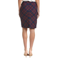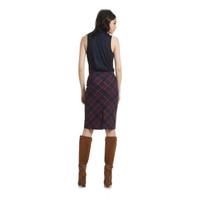 Trina Turk Skirt Crissy Pencil Tartan Plaid Skirt Navy Blue Pink SZ 10 NWT