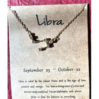Unbranded - Gold Plated Necklace Libra Zodiac Sign Constellation Cubic Zirconia