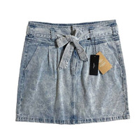 Vero Moda Katie Denim skirt Acid Wash Belted Retro Style SZ L NWT $79