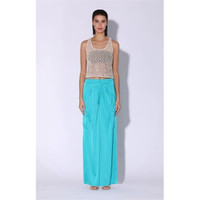 Walter Baker Denver Pant Turquoise Blue Wide Leg High Rise Satin SZ M NWT $198