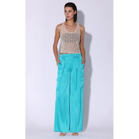 WALTER BAKER Denver Pants in Turquoise Satin retail $198 Relaxed fit with wide leg Cargo style design with side leg pockets Zip fly, button closure Belt loops Pleated front Hand pockets 100% polyester machine wash cold Inseam 32.25" Front rise 13" SZ M *New with tags