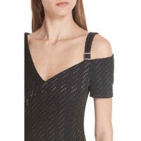 Yigal Azrouel - Yigal Azrouel Dress Black Stretch Weave Midi Cold Shoulder Sz 6 NWT