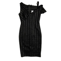 YIGAL AZROUEL Weave Stretch Cold Shoulder Black Dress Retail $1,290 This bodycon dress is elevated with its contemporary woven crochet pattern Finished with a cold-shoulder, it offers asymmetrical elegance V-neck One short cold-shoulder sleeve One sleeveless Concealed back zip Woven finish 51% Polyester/42% polyamide/7% elastane Dry clean Made in USA of French fabric Length 38.5" Chest 16" Waist 13.5" Hips 17.25" Sleeve 6" SZ 6 *New with tags - See Photos & Measurements