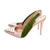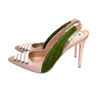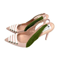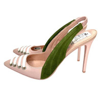 FENTY PUMA By Rihanna Pink sling Back Pumps Suede Formstripe Sleek leather upper Sneaker lacing detail Pointed toe Lace vamp Stiletto heel Approx. 4.25" heel height Made in Italy Leather upper, manmade lining/sole SZ 5.5 UK / 8 US *New without box