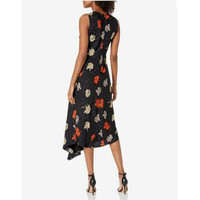 Theory Draped Tuck 100% Silk Carnation Midi Floral Dress SZ 0 NWT