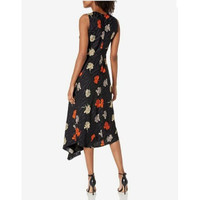 Theory Draped Tuck 100% Silk Carnation Midi Floral Dress SZ 00 NWT