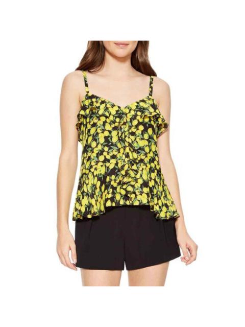 Parker Lemon Print Silk Print Ruffle Tank Top Blouse Yellow Black SZ S NWT