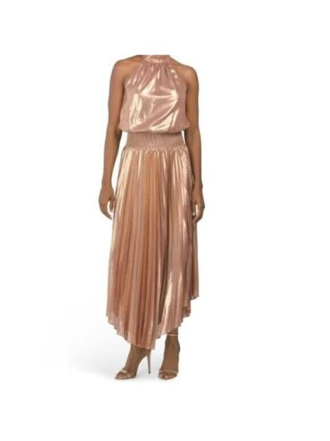 Ramy Brook Olana Dress Pleated Metallic Blus Pink Midi Dress Sz 8 NWT