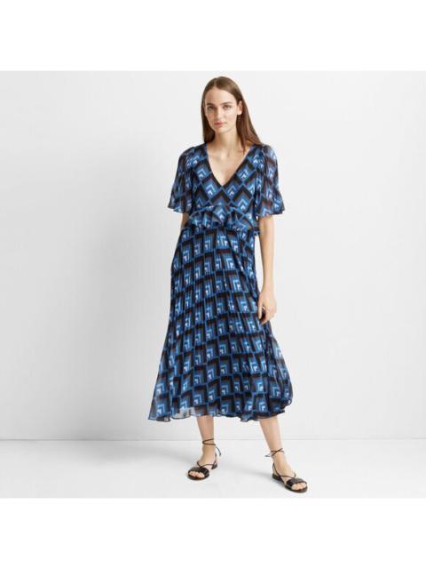Club Monaco Gostanzah Pleated Midi Dress Blue Diamond Print Ruffle SZ 6 NWT