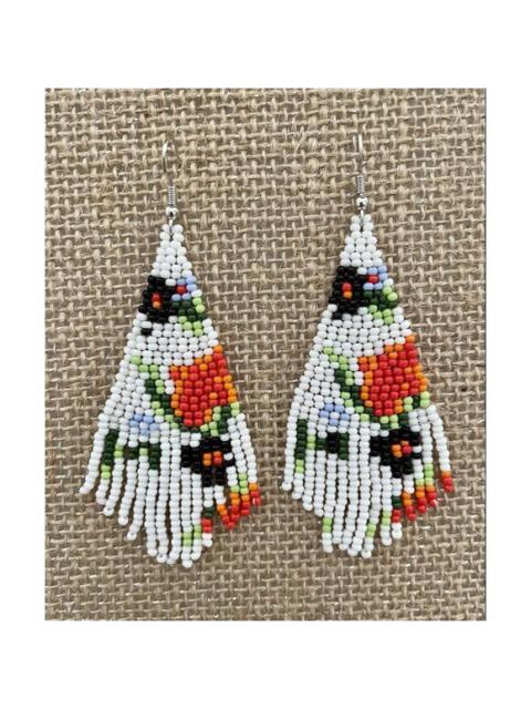 Handmade Miyuki Seed Bead Fringe Dangling Earrings Desert White Floral NWT