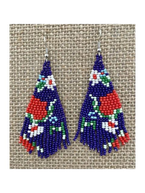 Handmade Miyuki Seed Bead Fringe Dangling Earrings Desert Red Floral NWT