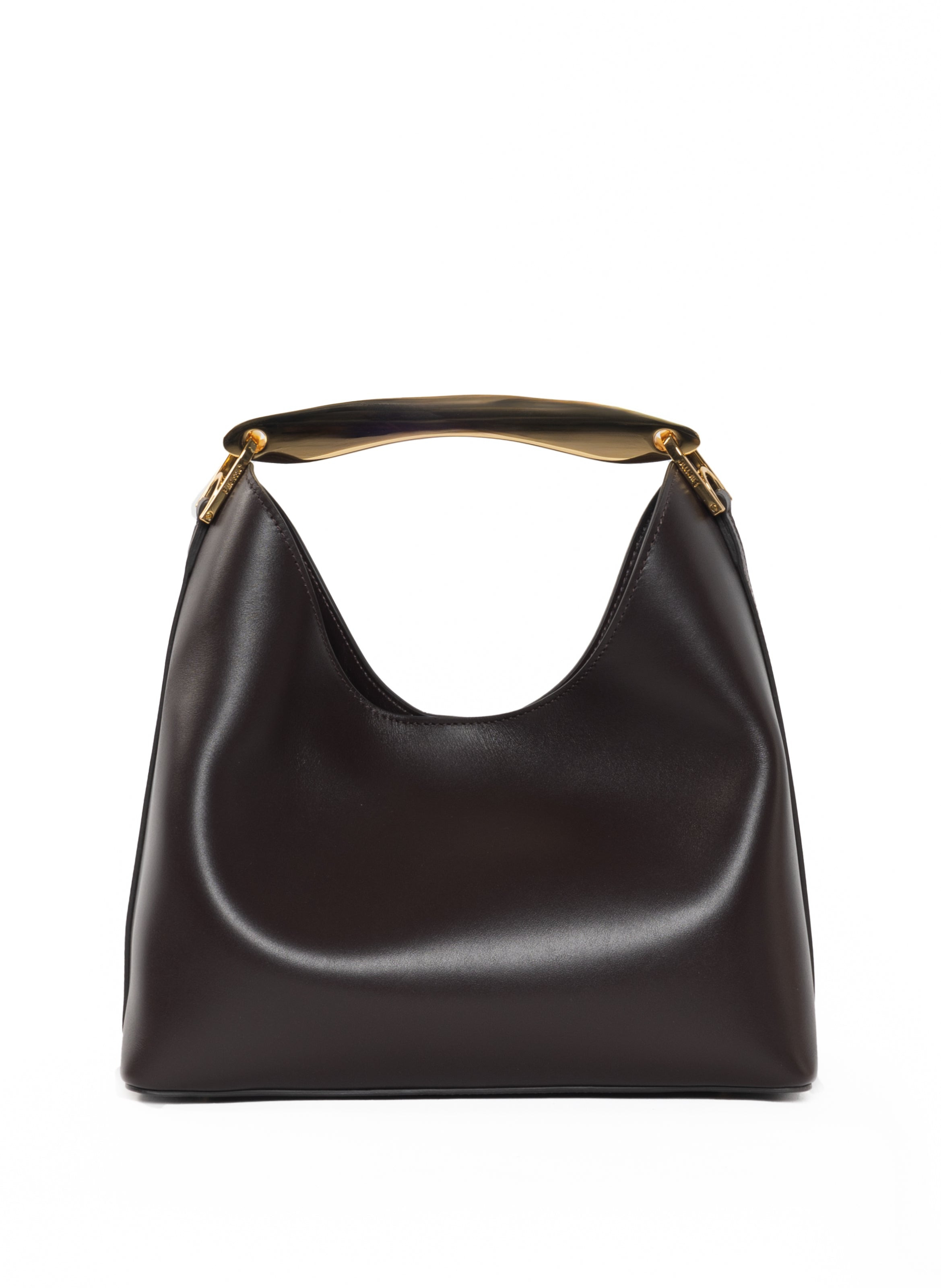 Accentuated by a sumptuous metal top handle, the Boomerang Large boasts the signature Elleme shape, epitomizing effortless chic Details Width: 27cm // 11" Height: 25cm // 10" Depth: 15cm // 5.9" Weight: 620g Strap drop:46cm // 18" Exterior: 100% Lambskin Leather from Italian tannery Lining: Microfiber suede Removable strap for a shoulder or crossbody wear Inner zip and flat pockets Magnetic closure 18k gold plated hardware Protective studs on the bottom Made in Italy