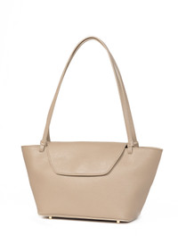 A structured tote bag with magnetic flap Details Top Width: 36cm // 14.2" Bottom Width: 22.5cm // 8.9" Height: 17cm // 6,7" Depth: 11cm // 4,3" Strap drop:24cm // 9.4" Exterior: 100% Cow Leather from Italian tannery Lining: Microfiber suede Interior zipped pocket Thin shoulder straps Worn as shoulder bag Made in Italy