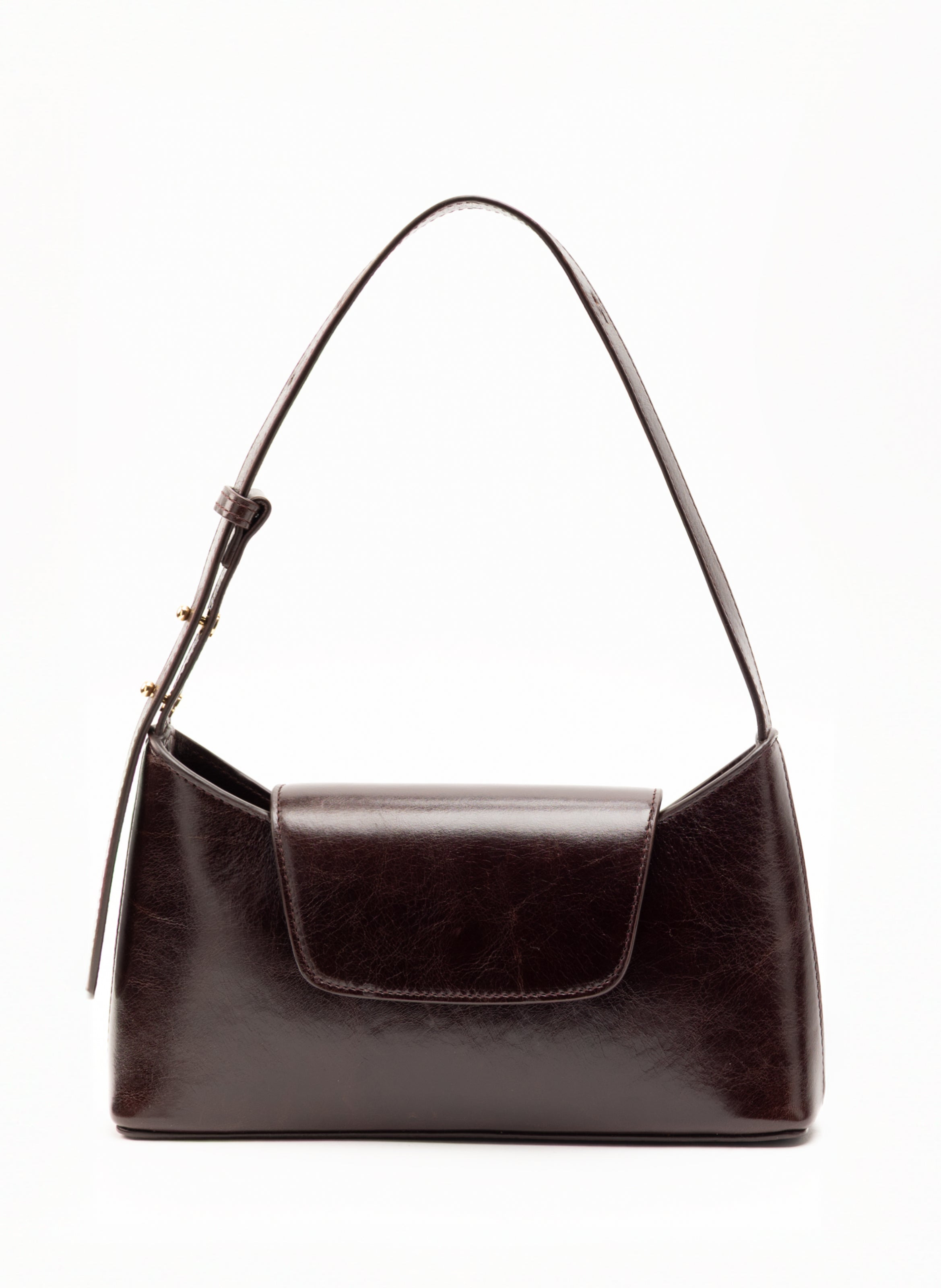 Envelope-shaped shoulder bag with 18k gold plated hardware. Details Width: 26cm // 10.2" Height: 13cm // 5" Depth: 5.5cm // 2.2" Strap drop: 4cm to 22cm // 1.6" to 6.7” Exterior: 100% Cow leather with crinkled effect Lining: Microfiber suede Adjustable top handle Magnetic front flap closure Internal slip pocket Made in Italy