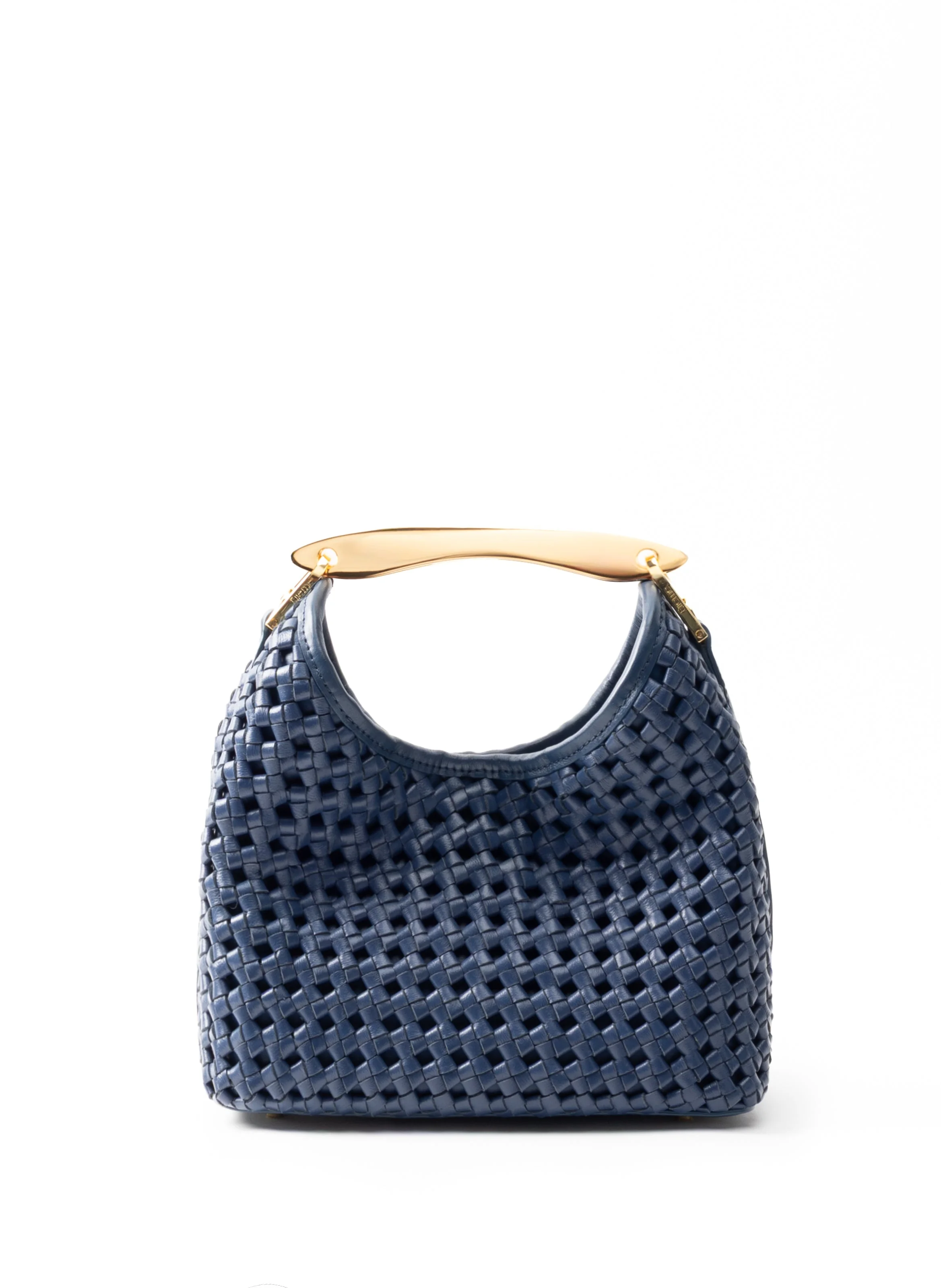 Small Boomerang Woven Leather Navy