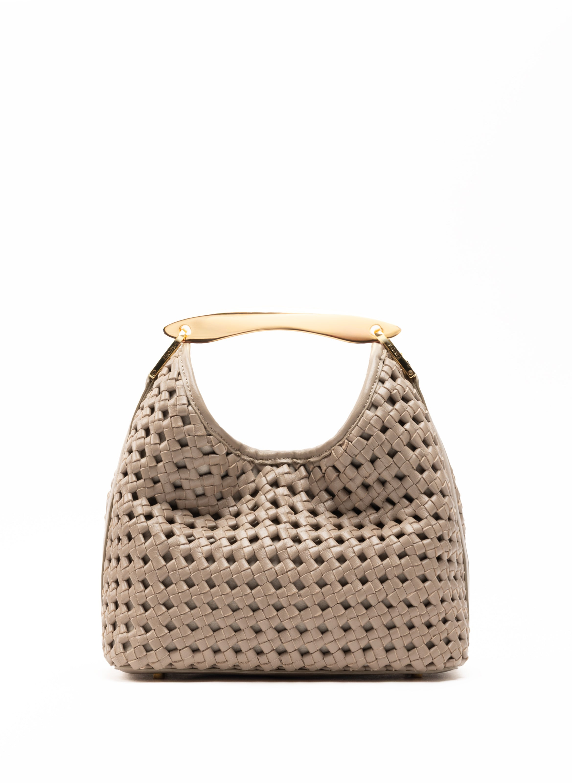 With its compact size, luxurious craftsmanship, and sophisticated metal top handle, the Boomerang Small pays homage to Elleme's signature aesthetic Details Width: 22cm // 9" Height: 22cm // 9" Depth: 10cm // 4" Weight: 400g Strap drop: 46cm to 53cm // 18" to 20" Exterior: 100% Lambskin Leather Lining: Microfiber suede Removable and adjustable strap for a shoulder or crossbody wear Inner flat pocket Magnetic closure 18k gold plated hardware Protective studs on the bottom Made in Italy