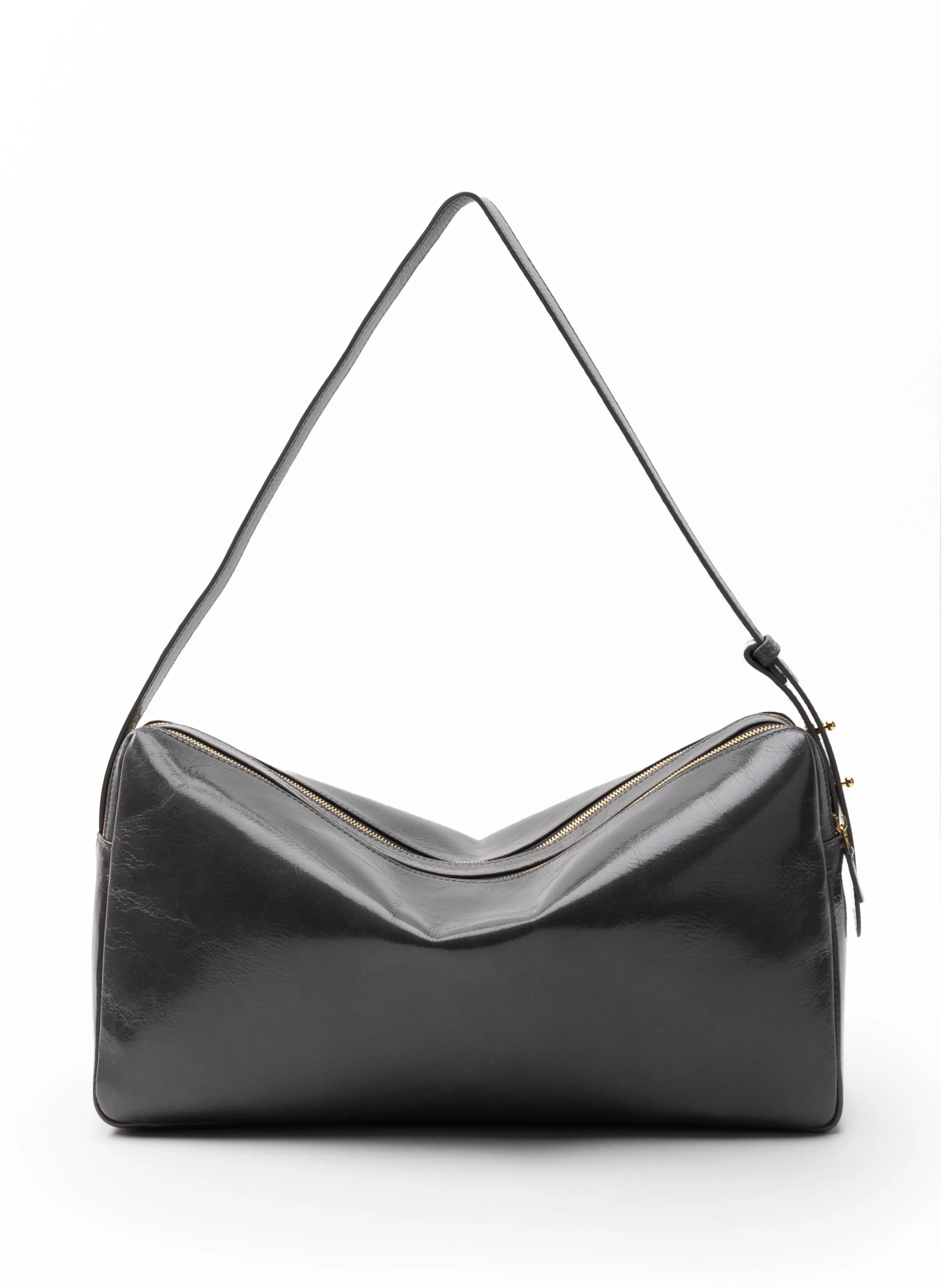 A fusion of minimalist boxy shape and supple leather incarnate the organic silhouette of the Trousse bag. Details Bottom Width: 39cm // 15.4" Top Width: 39cm // 15.4" Height: 20cm // 7.9" Bottom Depth: 10cm // 3.9" Top Depth: 7cm // 2.8" Strap Width: 2.3cm // 0.9" Between Zips: 3cm // 1.2" Strap drop: 20-26cm // 7.9"-10.2" Exterior: 100% cow leather with crinkled effect Lining: Microfiber suede Adjustable strap for a shoulder wear Zip closure 18k gold plated hardware Made in Italy