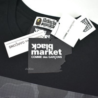 Over 4000 grails sold, buy with confidence - New / unworn - From CDG's Japan exclusive 'Black Market' line - Special release for 2022 New York Fashion Week - Black 100% cotton jersey knit - Tonal Bape camo print with CDG Black Market logo - Small Bape logo on sleeve - Crewneck and short sleeves - Original tags still attached - Made in Japan - Size XL Measurements: Pit to pit: 21.5" Shoulder to shoulder: 19.5" Top of neck seam to bottom hem: 30" Shoulder seam to sleeve end: 9.75" Guaranteed 100% authentic and genuine. All photos were shot by me. They are not stock photos.