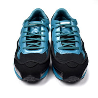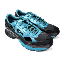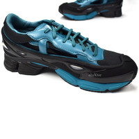 Over 4000 grails sold, buy with confidence - New / unworn - Very limited S/S 2018 release - Black and teal leather, mesh and canvas upper - Cutout side panels - Clear plastic bubble details - RAF SIMONS logo on tongue, rubberized Adidas logo on back tab - Black and teal Adiprene midsole - Black rubber outsole - Comes with original special edition box, 3 pairs of matching socks, extra laces, card, and tag - Size 9.5 US Measurements: Insole: 11.125" Outsole: 12.125" Forefoot width: 4.125" Heel width: 3.125" Guaranteed 100% authentic and genuine. All photos were shot by me. They are not stock photos.