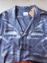 Burberry Shark Print 100% Silk Camp Collar Shirt