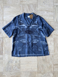 Over 4500 grails sold, buy with confidence MSRP: $1,250 - New / unworn - Fine 100% silk twill fabric - Allover shark print pattern - Button front, camp collar, 2 front pockets, short sleeves - Logo engraved horn buttons - Original tags still attached - Relaxed fit - Size Large Measurements: Pit to pit: 25.5" Shoulder to shoulder: 20" Top of collar to bottom hem: 29.25" Shoulder seam to sleeve end: 12" Guaranteed 100% authentic and genuine. All photos show actual item