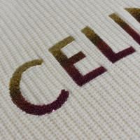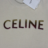CELINE Cream Wool Sequin Logo Crewneck Sweater