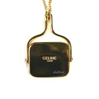 Celine Gold Chain Necklace Leather Logo Pendant