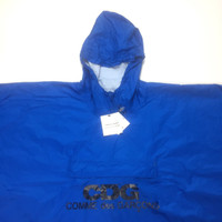 Grailed endorsed seller, over 4000 grails sold and 8000 references online. Buy with confidence Note: This is ONE SIZE FITS ALL. It is designed to be very oversized / baggy and to fit over anything / anybody. It is much wider flat than in the main picture, but it drapes into the shape you see. Contact me for fit pics. - Brand new / unworn - From the coveted 'Good Design Shop' line - Lightweight, waterproof blue nylon fabric upper - CDG classic logo print on front - Reflective 3M strip on back - Snap sides, drawstring hood, zippered kangaroo pocket, velcro adjustable cuffs - Original tags still attached - Oversized fit - Packable design, comes with logo printed dust bag - One size fits all; will fully cover almost any outfit Measurements Pit to pit: 49" shoulder to shoulder: 50.5" Top of collar to bottom hem: 41" Shoulder seam to sleeve end: 8.5" Guaranteed 100% authentic and genuine. All photos were taken in-house and show the exact item for sale.