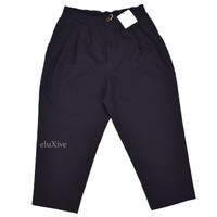 CDG Navy Pleated Cropped Wool Twill Pants NWT
