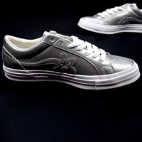 Over 4000 grails sold, buy with confidence - New / unworn - Dover Street Market exclusive 2019 release - A collaboration with Tyler The Creator - 'Golf Le Fleur' star logo, tongue stamp & sole print - Chuck Taylor logo patch on back - Metallic silver 3M upper - Leather & canvas lining - Comes with original box, dust bag, tag, and 2 sets of extra laces - Size 9 US Guaranteed 100% authentic and genuine. All photos were shot by me. They are not stock photos.