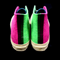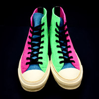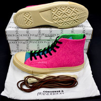 Grailed endorsed seller, over 4000 grails sold and 6000 references online. Buy with confidence - New / unused - Deadstock 2018 release - Color blocked pink, green, and blue felt upper - Embroidered Chuck Taylor logo on inner sides - JWA logo etching on outer sides - Classic 70's style high top silhouette - Felt lining - Vanilla felt toe cap and foxing - Vanilla rubber outsole - Comes with original box, dust bag, tag, and 2 sets of extra laces - Size 12 US Guaranteed 100% authentic and genuine All photos were shot by me. They are not stock photos.