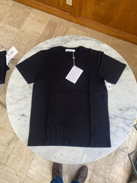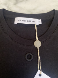 Over 3500 grails sold, buy with confidence MSRP: $200 - New / unworn - Black jersey knit 100% cotton - Signature embroidered hole detail under collar - Crewneck, short sleeves - Original tag still attached - Classic fit - Size Medium Measurements Pit to pit: 21" Shoulder to shoulder: 18" Top of collar to bottom hem: 28" Shoulder seam to sleeve end: 8.5" Guaranteed 100% authentic and genuine All photos were shot by me. They are not stock photos.