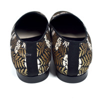 $1.3k Black Gold Floral Woven Smoking Slippers Loafers NWT