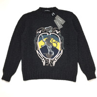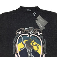 Over 3800 grails sold, buy with confidence MSRP: $2,495 - Brand new / unworn - Super rare F/W 2014 runway collection piece - Marled dark gray 100% wool heavy knit - Intricate Coat of Arms intarsia pattern at chest - Crewneck, ribbed cuffs, armor-knit details - Original tags still attached - Classic fit - Handmade in Italy - Size 54 EU (US Large) Measurements: Pit to pit: 23.5" Shoulder to shoulder: 19.5" Shoulder seam to sleeve end: 28" Top of collar to bottom hem: 26.5" Guaranteed 100% authentic and genuine. Purchased at Dolce & Gabbana private event in NYC. All photos were taken in-house and show the exact sweater you will receive.
