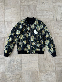 Over 4500 grails sold, buy with confidence MSRP: $1,400 - Brand new / unworn - Made of a quilted lightweight, windproof 55% acetate 45% cotton fabric - Reversible, with an allover floral print on one side and solid black on the other - Features metal zippers, 4 pockets, thick ribbed cuffs, and raglan sleeves - Classic fit - Original tags still attached - Size 52 EU (US Large) Measurements Pit to pit: 22" Neck seam to sleeve end: 31" Top of Collar to Bottom Hem: 26" Guaranteed 100% authentic and genuine. All photos show actual item
