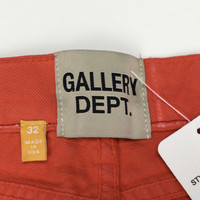 Over 4000 grails sold and 6000+ references online. Buy with confidence MSRP: $1,095 - Brand new / unworn - Bright red cotton denim with metallic silver coating - Distressed Gallery Dept. leather tag on back - 5-pocket design, button fly, flared leg - Logo engraved metal hardware - Slim fit - Handmade in USA - Size 32 Measurements Waist (flat): 16.75" Inseam: 30.25" Rise: 11.75" Leg Opening: 10" Guaranteed 100% authentic and genuine. All photos were shot by me and show the exact jeans for sale.