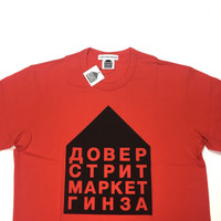 Over 3800 grails sold, buy with confidence - Brand new & unworn - Special collaboration celebrating the 5th anniversary of Dover Street Market Ginza - Red 100% cotton jersey knit - Black 'Dover Street Market Ginza' print in Russian on front - Crewneck & short sleeves - Slim fit - Comes in original packaging with tags still attached - Size XL Measurements: Pit to pit: 21.5" Shoulder to shoulder: 18.5" Top of neck seam to bottom hem: 30" Shoulder seam to sleeve end: 9.75" Guaranteed 100% authentic and genuine, purchased from DSM on release day. All photos were taken in-house by me and show the exact piece for sale.