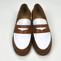 Over 4000 grails sold, buy with confidence MSRP: $660 - New / unworn - Cognac tan leather upper - 2 tone design with white leather toe - Classic penny strap - Leather lining and outsole - Includes original box and dust bags - Handmade in England - Size 9 UK / 10 US Measurements: Insole: 10.75" Outsole: 11.75" Forefoot width: 4.25" Heel width: 2.875" Guaranteed 100% authentic and genuine All photos were shot by me. They are not stock photos.