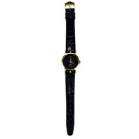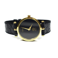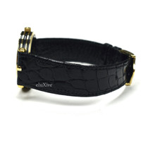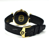 Over 4000 grails sold, buy with confidence - Pre-owned, in very condition with light scratching - All-original vintage item from the 1980's - Extremely rare employee gift made by Gucci for Bally's Casino; never available to the public - 18K gold-plated stainless steel case - Black web stripe detail on sides - Black dial with gold GUCCI and Bally's Casino logos - Brand new original Gucci black croc-stamped leather band - 18K gold-plated 'GG' logo engraved buckle - Quartz movement, keeps perfect time - Includes original box and paperwork - Swiss Made Measurements Case width: 30 mm Case thickness: 6 mm Strap width: 16mm Fitment: 6.5" - 8" wrist Guaranteed 100% authentic and genuine All photos were shot by me. They are not stock photos.