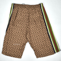 Gucci Brown Rhombus Logo Monogram Web Stripe Shorts NWT