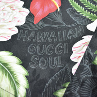 Over 3500 transactions completed, buy with confidence MSRP: $1,250 - New / unworn - Fine 100% silk fabric - Allover Hawaiian Dream floral print with hidden Gucci logos - Elastic waist, button fly, 4 pockets - Original tags still attached - Relaxed, long fit - Made in Italy - Size 32 US / 48 EU Measurements Waist (flat): 15" Inseam: 12.75" Rise: 11.75" Leg opening: 12.25" Guaranteed 100% authentic and genuine. All photos were shot by me. They are not stock photos.