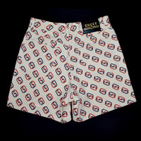 Gucci Red/Blue GG Logo Print Twill Shorts Ivory White DS
