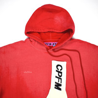 Over 3000 grails sold, buy with confidence - New / unused - Very limited 2019 release - As worn by many of fashion's top influencers - Red 100% cotton loopback knit with faded finish - CPFM logo sock stitched on front - Drawstring hood, kangaroo pocket, stiff ribbed cuffs - Boxy, cropped 'shrunken' fit - Each garment is 1 of 1, and has a unique finish - Comes in original package - Size 2 JP (US small according to CPFM) Measurements: Pit to pit: 24" Shoulder to shoulder: 23" Top of collar to bottom hem: 24" Shoulder seam to sleeve end: 19" Guaranteed 100% authentic and genuine. All photos were shot by me. They are not stock photos.