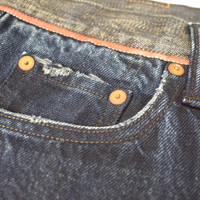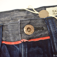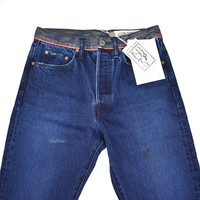 Over 3000 grails sold, buy with confidence MSRP: $490 - New / unworn - Made of overdyed blue denim - Small intricate embroidery on left leg - Red trim below waist line - 5-Pocket design, buttoned fly, logo engraved metal hardware - Leather logo patch above back pocket - Tapered fit - Original tags still attached - Made in Japan - Size 30 Measurements Waist (flat): 14.5" Inseam: 31" Rise: 11.25" Leg Opening: 6.5" Guaranteed 100% authentic and genuine All photos were shot by me. They are not stock photos.