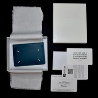 Over 4700 grails sold, buy with confidence MSRP: $210 - Brand new / unused - Fine genuine leather with signature Margiela pick stitch on front - Saffiano textured leather on back - 3 cards slots & 1 interior pocket - Comes with original box, dust cloth, and tags - Made in Italy - Measures 4" x 2.75" - NOTE: Margiela official color is "deep jade" - it may look more blue/green/turquoise depending on your screen and your eyes Guaranteed 100% authentic and genuine All photos show actual item